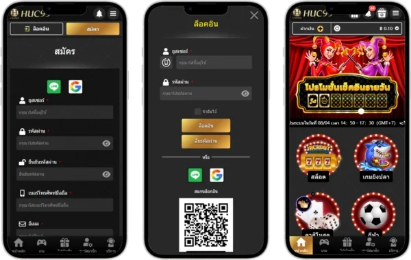 ใช้เวลาน้อยกว่า 1 นาทีแน่นอน เร็ว ง่าย ไม่ซับซ้อน หลังจากสมัครเสร็จ แนะนำไปที่แถบด้านบนสุดของหน้าจอ HUC99 Download แอปติดเครื่องไว้เลย เล่นผ่านแอปคือสะดวก ลื่น ไม่มีสะดุด กดเข้าปุ๊บ ลุยเกมได้ทันที ไม่ต้องเปิดเบราว์เซอร์ให้วุ่นวาย หรือสุ่มเสี่ยงเจอลิงก์มิจฉาชีพ